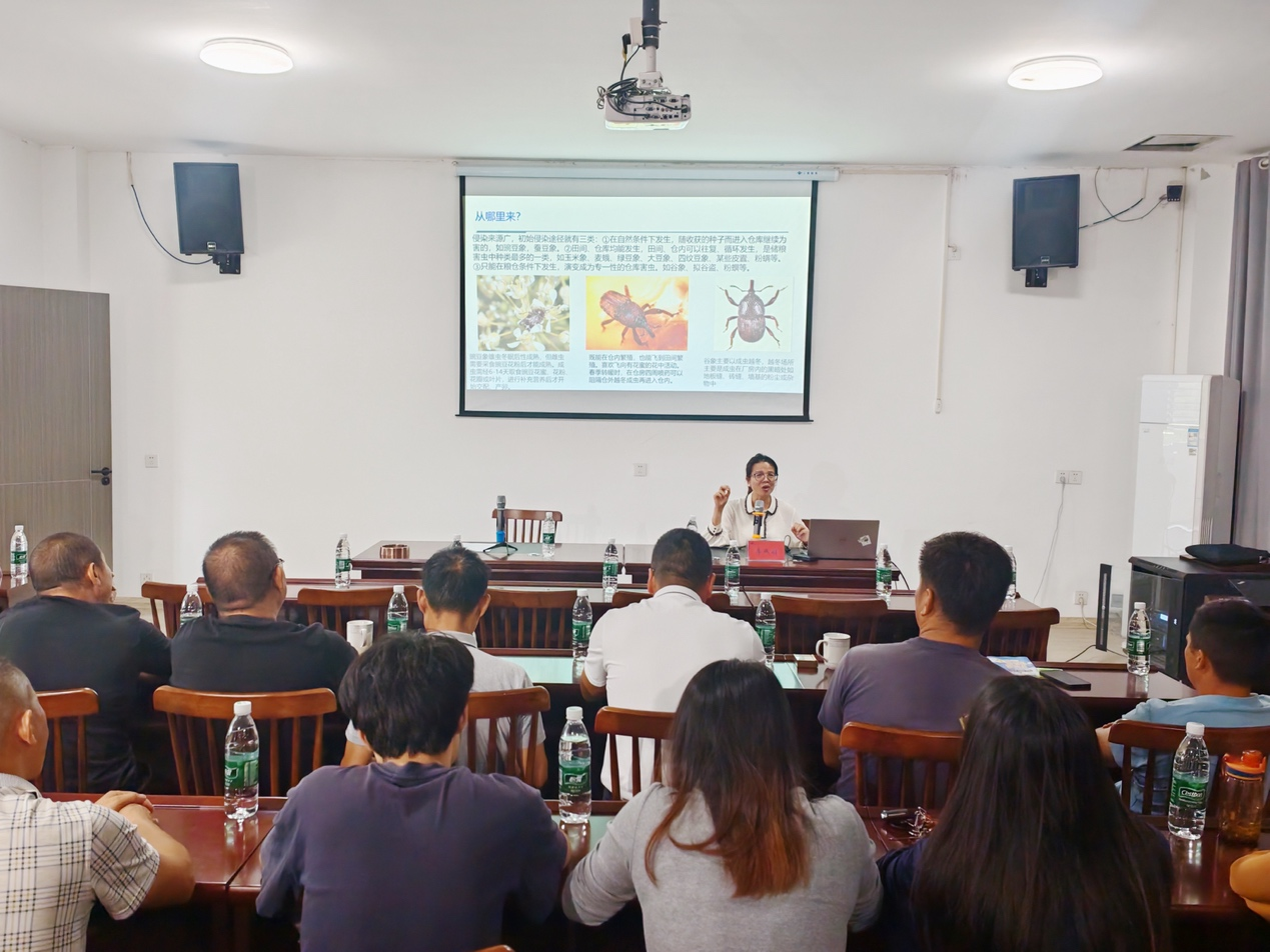 在明畅农机专业合作社,李燕羽结合当地实际,以“助农防控虫和霉,守好家庭小粮仓”为题作报告,通过操作示范、视频展示等方式,向当地农户介绍绿色储粮技术,受到广泛好评。