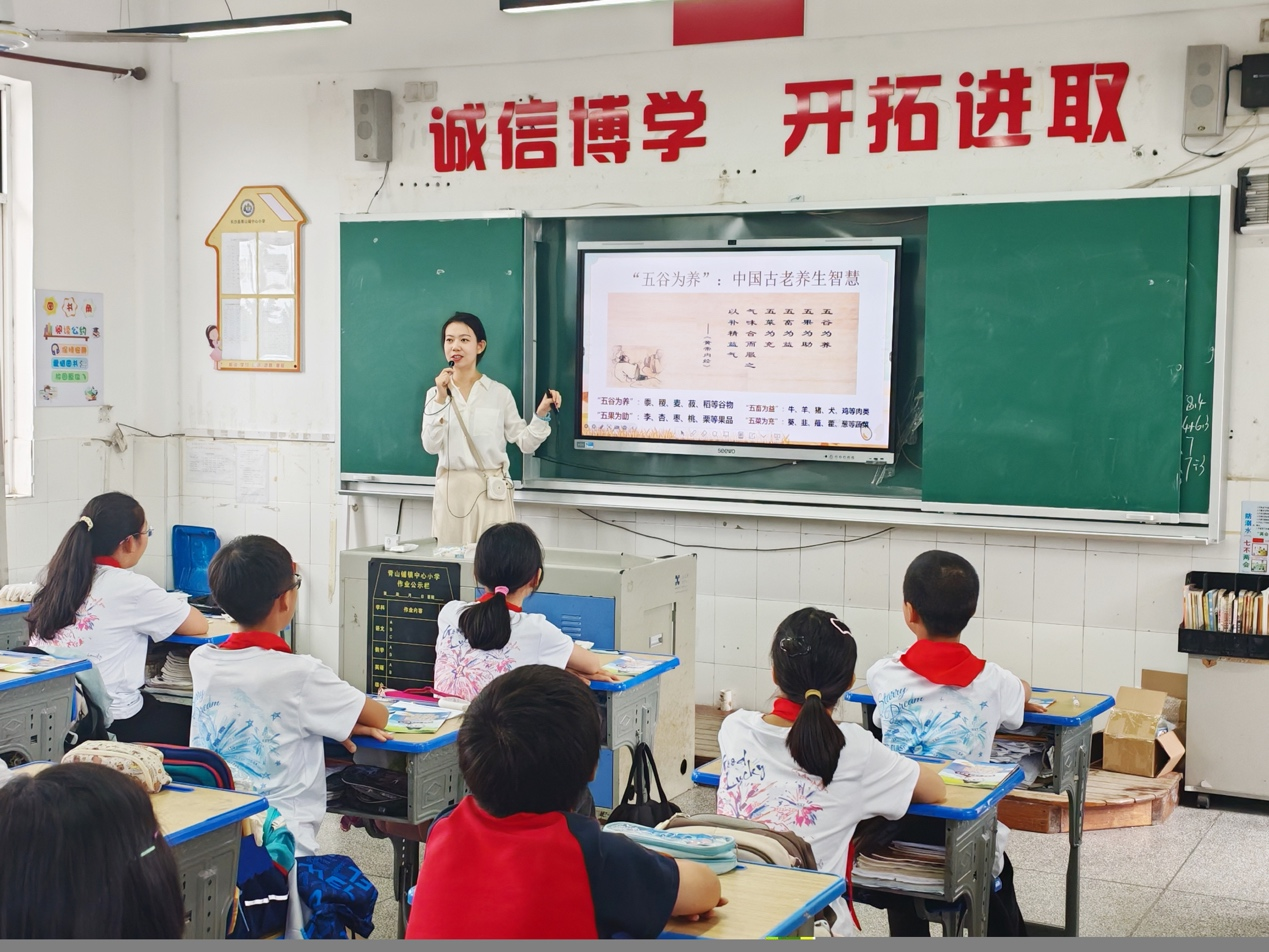 在青山铺镇中心小学,翟小童围绕“全谷物:从科学到餐桌的健康革命”作科普讲座,通过通俗易懂的语言向孩子们讲解全谷物营养健康知识,倡导大家在日常生活中优化饮食结构,践行国家全谷物行动计划。授课现场互动积极,气氛热烈。