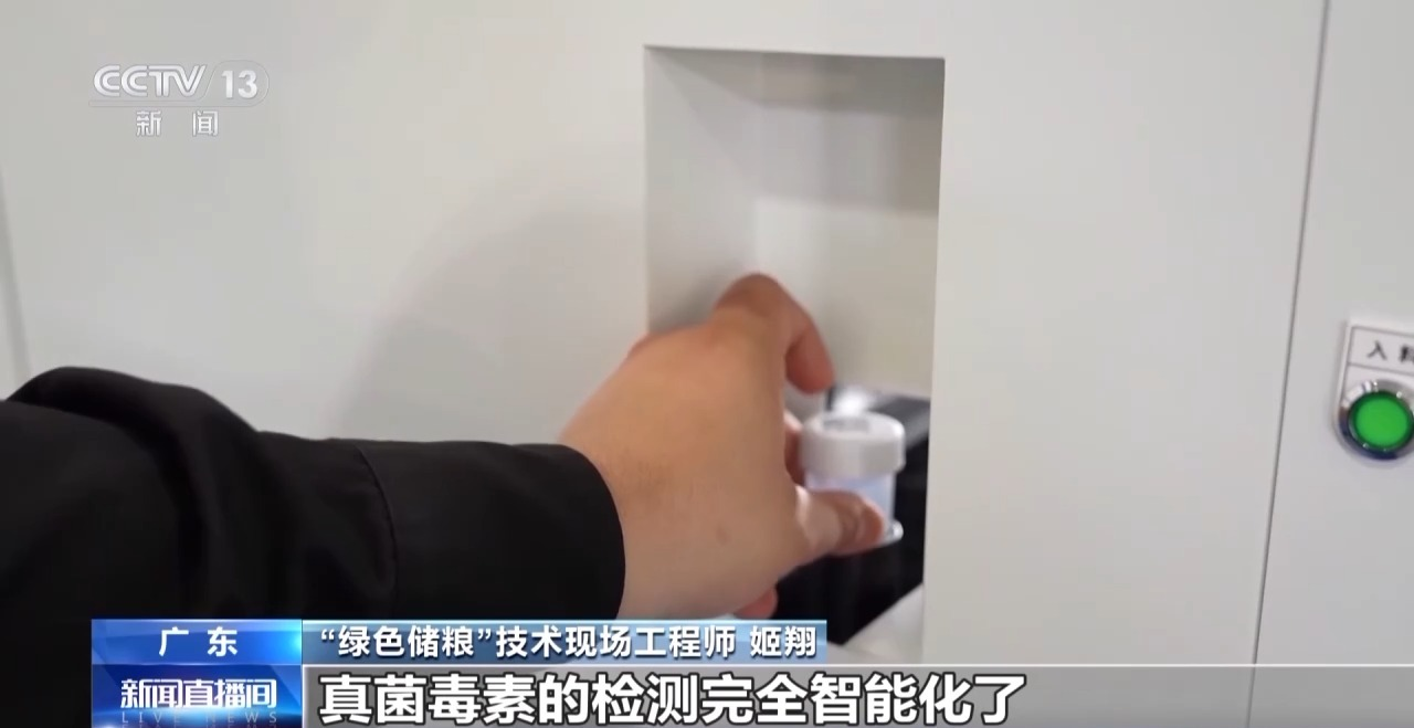 “绿色储粮”技术现场工程师 姬翔:一个是真菌毒素检测,一个是重金属检测、农药残留检测,真菌毒素检测就是粮食安全中最重要的一个环节,它(真菌毒素全自动检测仪)就是把真菌毒素的检测完全智能化了,完全自动化了。
