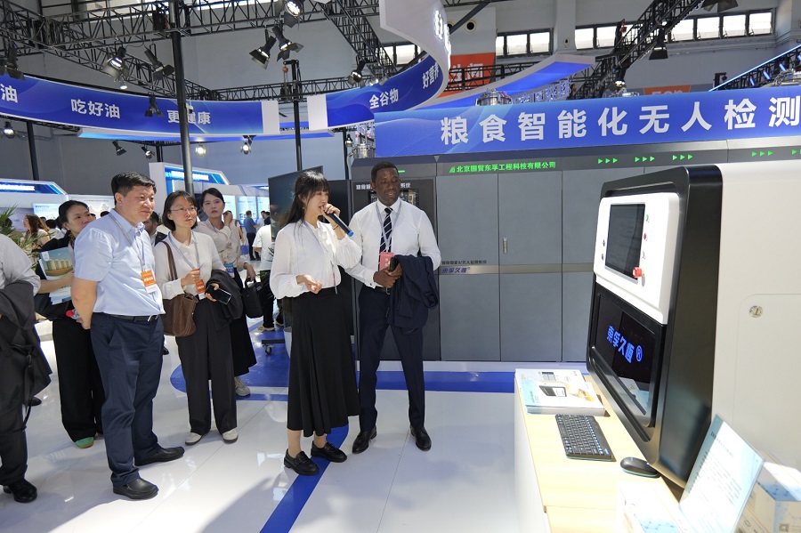 本次大会我院组织储运所、质量安全所、品质营养所、加工所、检测中心、中心实验室六个部门以及所属科技型企业国贸东孚参展,协同佳禾食品、谷道粮心、轻诉健康、星创仪器、天合云途、同福健康六家合作企业组团亮相,现场通过实物展示、产品品鉴、视频演示等多种形式,结合ai机器人讲解和趣味互动,全方位、多角度、创新性展现科技创新能力和院企合作成果。其中系列健康食品以及应急加工成套装备、智能化无人装备等受到与会代表的广泛关注,多个省(市)粮食主管部门主要负责同志带队到展位参观交流、参与品鉴,多家仓储和检验检测企业到展位洽谈业务、咨询绿色储粮技术合作,新华社、央视新闻、中国新闻网、中国商报、北斗融媒等十余家中央、地方媒体对科学研究院系列科技成果和首席科学家进行采访报道,还吸引安哥拉、阿根廷等外国驻华使节、fao等有关国际组织代表等前来参观交流和品鉴。